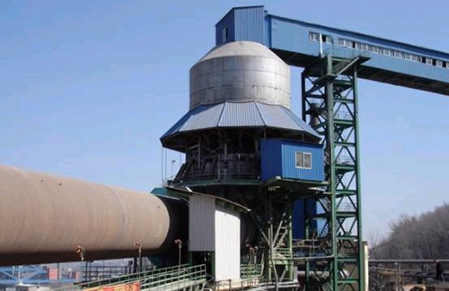 原料由加料室进入烟气物料隔离罩,沿中央分料锥的锥面均匀分布于预热器本体两圆筒间环形堆料空间。来自回转窑900~1000℃的热烟气经集气室的进气孔进入环形堆料空间的整个断面,通过料层,朝进料方向逆向流动 ,进行充分的热交换。预热至600℃的物料借助各个推杆卸料器依次被推至窑内 。达到均匀喂料的目的。热交换后温度降至约300℃的烟气 ,经电除尘器排烟机排入大气。